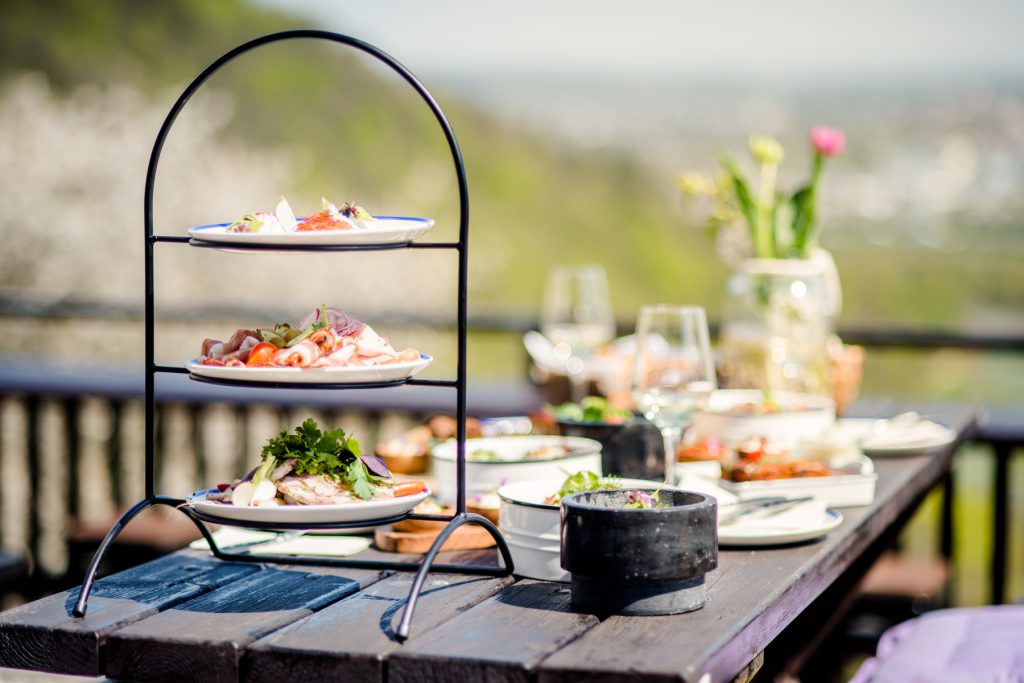Hoch über Wien, am Nussberg im 19. Bezirk, liegt die Buschenschank Der Hirt – seit 1935 ein Fixpunkt der Wiener Heurigenkultur. Wer hier einkehrt, sitzt zwischen Reben, blickt über die Donau und auf die Stadt und erlebt Heurigen-Tradition mitten im Grünen. Auf den Tellern stehen Aufstriche, Aufschnitte, frische Salate und warme Schmankerln, die zum Teilen gedacht sind. Besonderes Highlight: die Etageren, die gleich mehrere Klassiker für zwei Personen vereinen und damit ein Stück Wiener Geselligkeit auf den Tisch bringen.