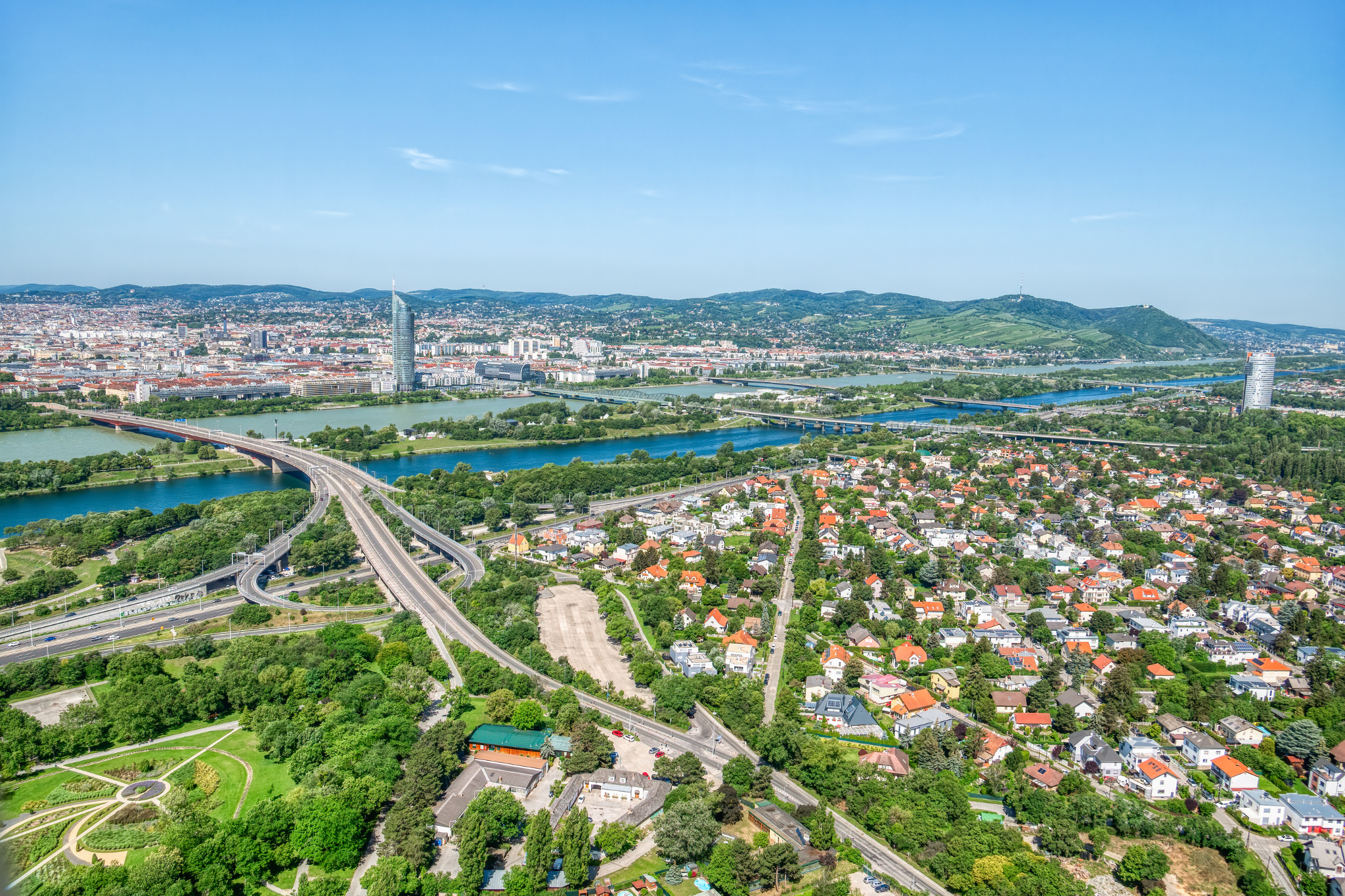 Zwischen Donauinsel, Bisamberg und den alten Ortskernen zeigt der 21. Bezirk eine Mischung aus Stadt und Dorf: um „Am Spitz“ verdichten sich Wege, drumherum liegen Wohngebiete, Werkstätten, Kleingärten und weiter draußen die Weinberge. Kulinarisch spürt man diesen Rhythmus über den Tag: Bäckereien und Stehcafés am Morgen, einfache Mittagsküchen, dazu Märkte wie der Schlingermarkt; an warmen Tagen zieht es viele ans Wasser.