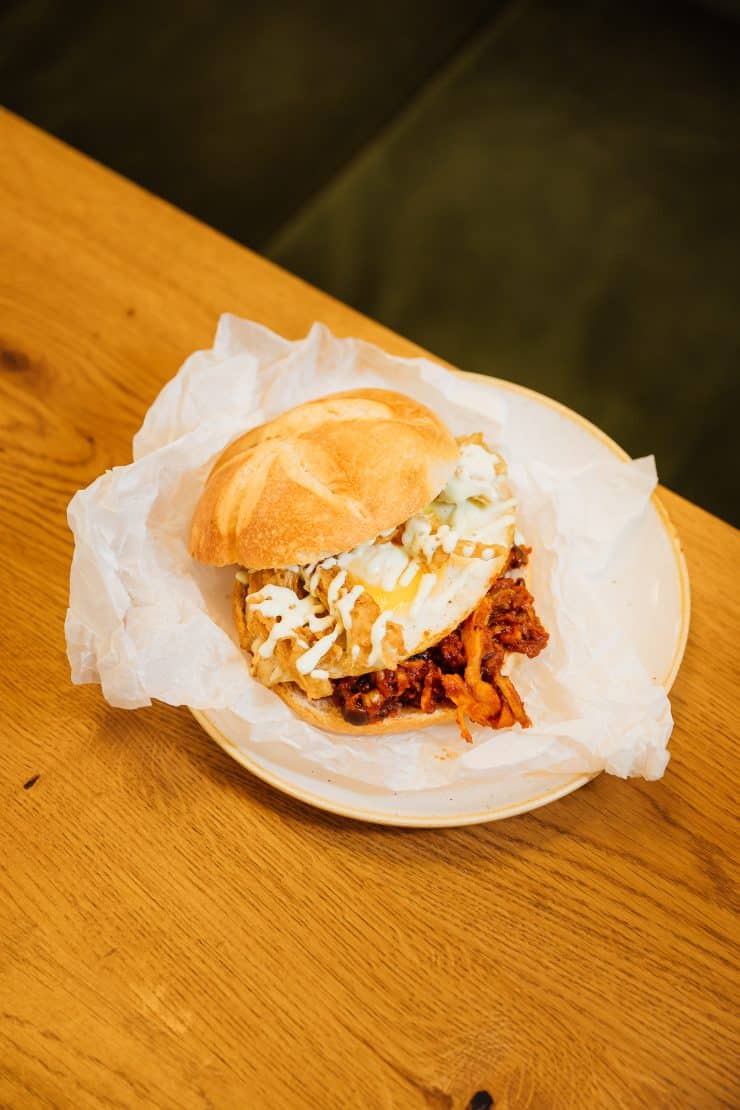 Den Auftakt bildet der Kuvert-Brotgang mit ausgewählten „Ströck-Feierabend“-Brotspezialitäten, serviert mit Carbonara-Butter von Rosa & Marie und eingelegtem Gemüse aus gemeinsamer Produktion. Das Beef Tatar auf frittierter Brioche – einer neu interpretierten Pinze – überzeugt mit Tiefe und Textur.