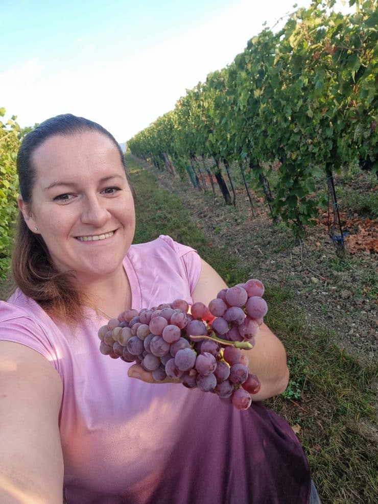 „Winzerin zu werden, war nicht von Anfang an mein Plan“, erzählt Alexandra Schachl. Doch als ihr Bruder den Betrieb nicht übernehmen wollte und sie ihren heutigen Mann kennenlernte, änderte sich alles – und die Idee, ins Familienweingut einzusteigen, nahm Gestalt an. 2018 legte sie gemeinsam mit ihrem Mann die Facharbeiterprüfung für Weinbau und Kellerwirtschaft ab. Sogar den Traktorführerschein hat sie gemacht, denn neben Heurigen, Weinverkauf und Kellerarbeit packt sie auch im Weingarten kräftig mit an.
