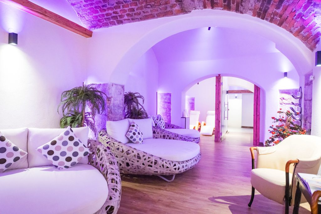 Im Monasterium SPA erwartet Sie wohltuende Erholung. Der feine SPA-Bereich umfasst ein historisches Gewölbebad, eine finnische Sauna, eine Biosauna und eine Infrarotkabine – in der Sauna genießen Sie dabei den einzigartigen Blick auf eine über 800 Jahre alte Klostermauer. Der malerische Schlossgarten blüht im Frühling besonders auf – er ist der perfekte Ort für ruhige Stunden oder ein Glas Wein im Grünen. Und wer auf der Suche nach einem Ort für besondere Anlässe ist, findet in den historischen Prunkräumen den passenden Rahmen für stilvolle Tagungen, exklusive Events oder kulturelle Veranstaltungen.