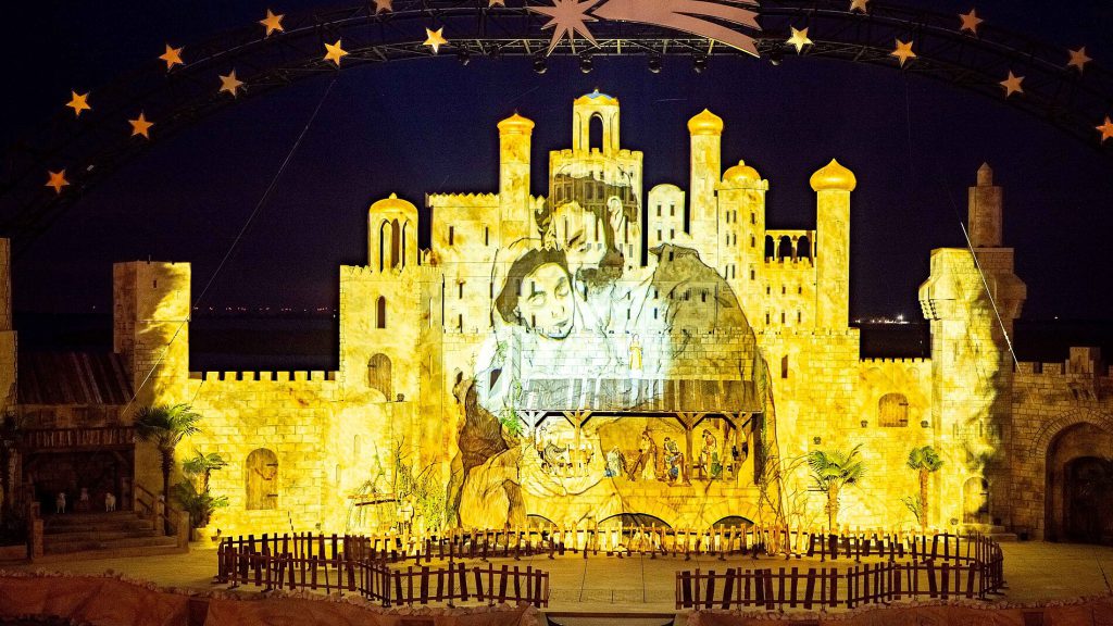 Am Ende des Weges öffnet sich der Blick auf das Herzstück des Winterwunders: die größte Weihnachtskrippe der Welt auf der Seebühne Mörbisch. Mit 90 Metern Breite und 18 Metern Höhe ist sie nicht nur eine Frage der Dimension, sondern auch der Inszenierung. Bühnenbildner Manfred Waba hat eine Kulisse geschaffen, die durch eine neue Projektionsshow zum Leben erwacht. Licht, Farbe und Musik erzählen die Weihnachtsgeschichte neu – nicht kitschig, sondern atmosphärisch, fast meditativ. Es ist ein Moment, der selbst routinierte Adventbesucher kurz innehalten lässt.