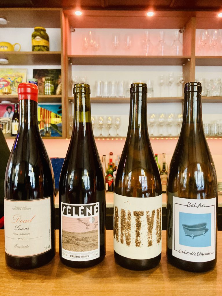 Ebenso sorgfältig die Weinauswahl. In Kürze: Furmint vom Wenzel, Welschriesling von Clemens Krutzler, Carmen und Herbert Zillingers spannende Kreszenzen, auch einige Rote zieren die schmale Weinkarte. Sprudel gibts natürlich auch. Schmale Karte, denn die Auswahl wird stets durch wechselnde naturbelassene Weine angereichert. Naturbelassen heißt: Gesunde Böden, Spontanvergärung, meist Bio. Trotzdem sind es Weine, die auch für klassische Weintrinker interessant sind.