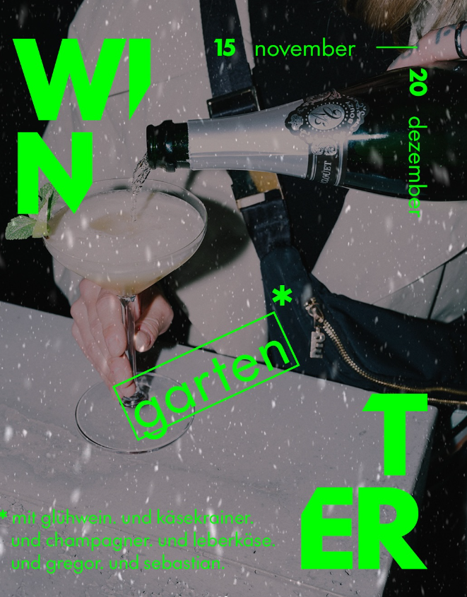 Das Schatz Imhof wird zum Wintergarten und serviert genau das, was kalte Tage brauchen: Glühwein, Käsekrainer, Champagner, Leberkäse – und natürlich Gregor und Sebastian. Rustikal, warm, unkompliziert. Einfach der perfekte Winter-Hangout mitten im November und Dezember.