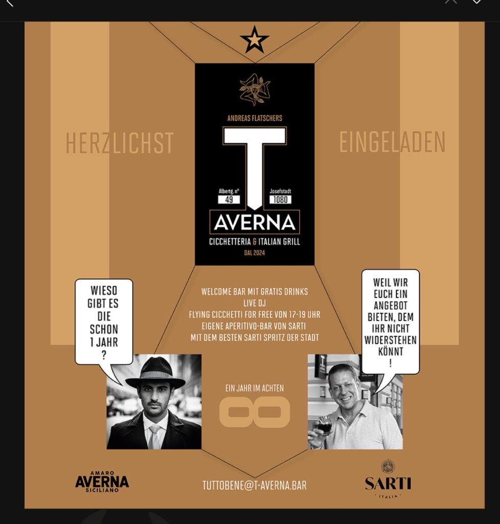 In der Albertgasse steht ein besonderer Abend bevor: Die Taverna wird ein Jahr alt, und Andreas Flatscher nimmt diesen Anlass so, wie man ihn kennt – entspannt, gastfreundlich und mit einem Hauch von Bella Italia, der sofort gute Laune macht.