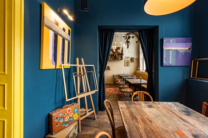 Die Geschichten, Erlebnisse und Gewohnheiten der Familienmitglieder werden in den einzelnen Räumen, weiter im ganzen Haus anhand von Möbeln, Bildern und Dekorationselementen erzählt. So findet man sich beispielsweise in Opa’s Jagdstüberl wieder, wo Hirschgeweihe an der Wand hängen, rustikale Bänke zum Verweilen einladen, sowie Fleckerlteppiche an eine tatsächliche Jagdstube vom Großvater erinnern. Der Mutter, die den Charakter der leidenschaftlichen Sammlerin trägt und sich für Kunst interessiert, ist das Atelierzimmer zugeordnet. Das zeigt sich farbenprächtig, bunt mit Staffeleien und Gemälden zur Dekoration. Und die sogenannte „Wohnstube“ im unteren Bereich des Gasthauses versprüht authentisches Wohnzimmer-Flair aus anno dazumal.