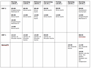 Fernsehen kann einfache Unterhaltung bieten und auch interessantes Wissen vermitteln. Gerade diesen Winter haben vermutlich viele Zeit die Rezepte von Starköchen nach zu kochen und informative Beiträge zu verfolgen. Kochen, Gastronomie und Genuss ist unsere Passion. Für all jene die diese Passion teilen, hat Gastro News alle Sendungen der nächsten Woche zusammengesucht, die ganz im Zeichen des Genuss-Wissens stehen. Wir wünschen Ihnen viel Spaß mit dem Programm.